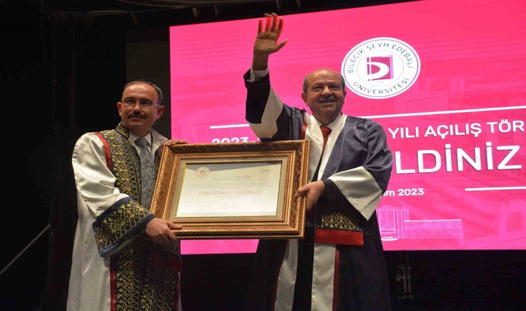 KKTC Cumhurbaşkanı Ersin Tatar, bir takım ziyaretler için geldiği Bilecik’te ilk olarak Osmanlı Devletinin kurucusu Osman Gazi’nin kayınpederi, devletin manevi kurucusu Şeyh Edebali’nin türbesini ziyaret etti. Ardından Bilecik Valisi Şefik Aygöl’ü ziyaret eden Tatar, son olarak Şeyh Edebali Üniversite 2023-2024 Akademik Yılı Açılış Töreni’ne katıldı. Tatar’a üniversite tarafından ’Fahri Doktora Diploması’ verildi.