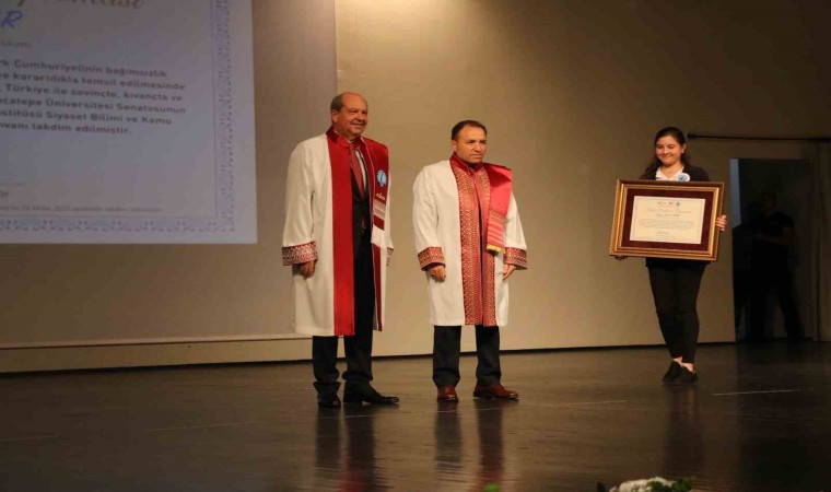 Konuşmaların ardından Cumhurbaşkanı Tatar’a AKÜ Rektörü Prof. Dr. Mehmet Karakaş tarafından akademisyen cübbesi giydirilip, Fahri Doktora belgesi takdim edilirken, Vali Doç. Dr. Kübra Güran Yiğitbaşı tarafından da günün anısına hediye takdim edildi.