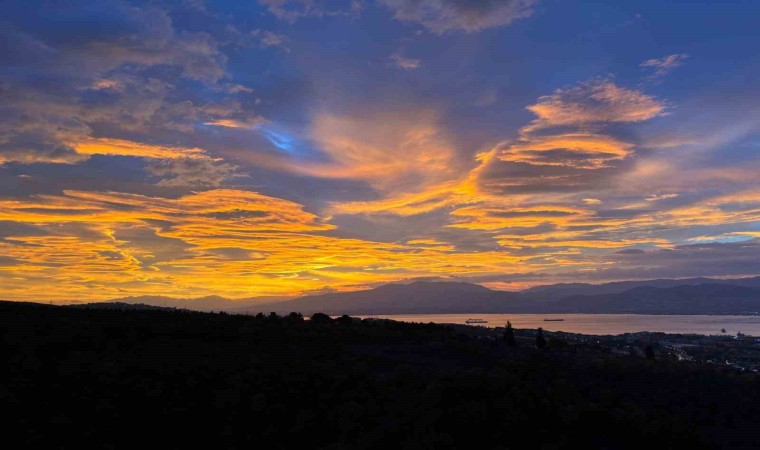 Kocaeli’de, sabah güneşin doğuşu ile gökyüzü kızıla büründü. Kentin üzerinde oluşan manzara görenleri mest etti. Sabahın ilk ışıklarında işe gidenler, eşsiz manzarayı kaydetmeyi ihmal etmedi.