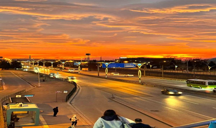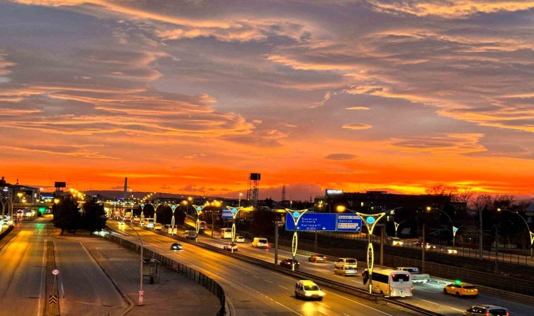 Gökyüzünün kızıllığı, bulutlar ve şehrin ışıklarının oluşturduğu manzara, görenlere unutulmaz bir an yaşattı.