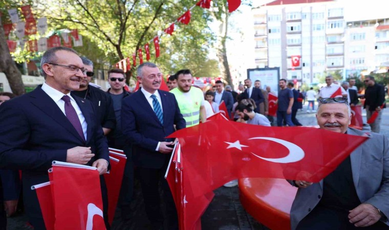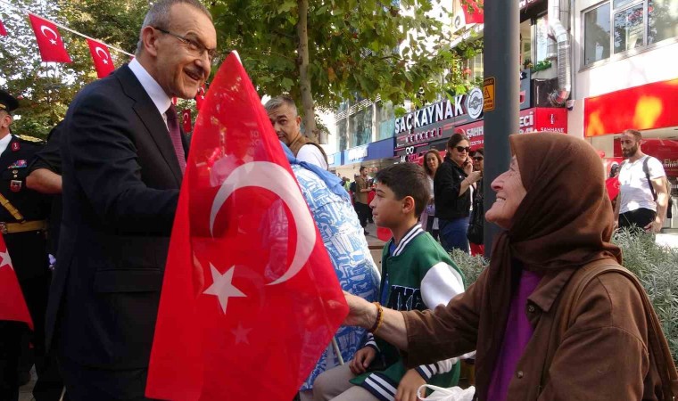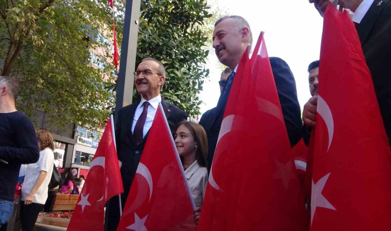 Cumhuriyet’in 100. yılı dolayısıyla Kocaeli Valisi Seddar Yavuz ve kent protokolü, Atatürk Anıtı’na çelenk bırakarak vatandaşlara Türk bayrağı dağıttı.