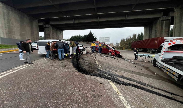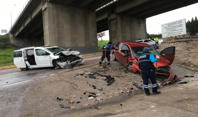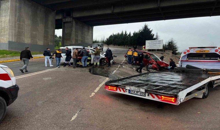 Kocaeli’nin Derince ilçesinde rampadan indiği esnada kayganlaşan yolda duramayan otomobil, karşı şeritten gelen hafif ticari araçla kafa kafaya çarpıştı. Kazada 3 kişi yaralanırken, araçlar hurdaya döndü.