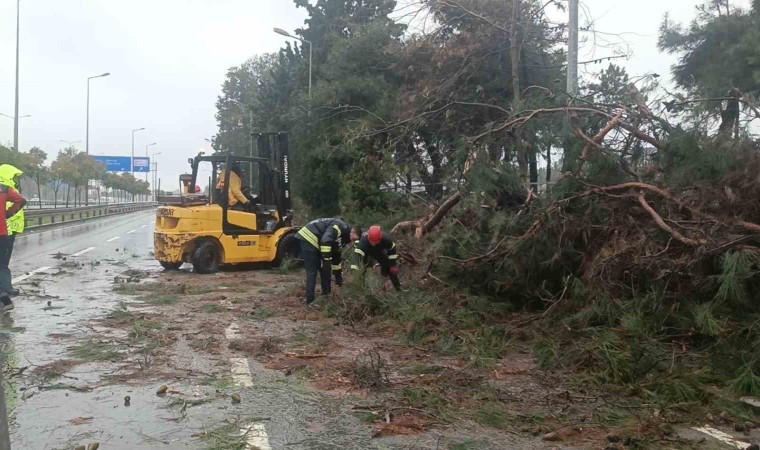 Gebze’de ise Kuzey Yanyol Caddesinde bulunan ağaçlar rüzgarın şiddetine dayanamayarak devrildi. İhbar üzerine olay yerine gelen itfaiye ekipleri ağaçları yoldan kaldırdı.