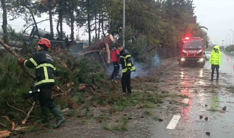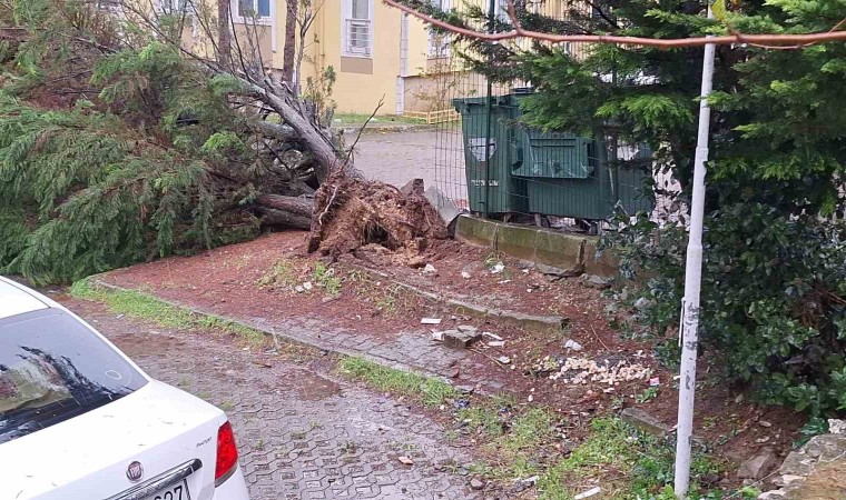 Şiddetli rüzgarın etkili olduğu Kocaeli’de fırtınaya dayanamayan ağaçlar devrildi.