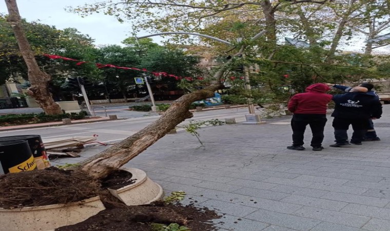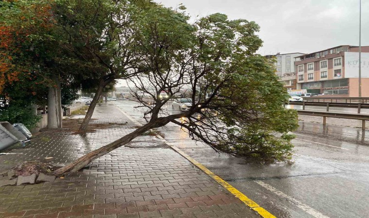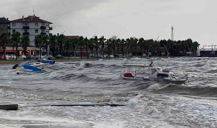 Kocaeli’de etkili olan lodos nedeniyle deniz taşarken, çatılar uçtu, ağaçlar yerinden söküldü, 2 tekne ise battı.