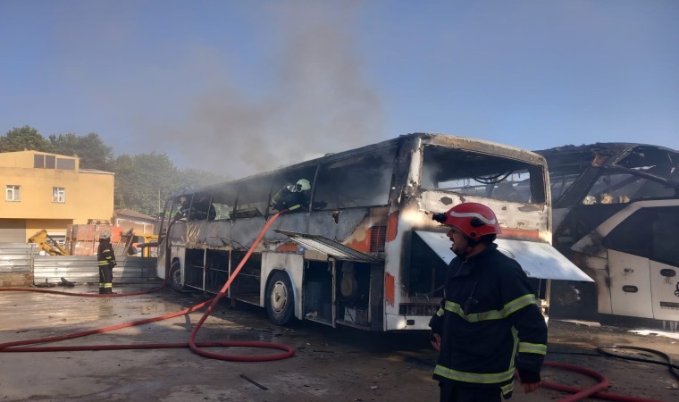 Kocaeli’nin Gebze ilçesinde otoparkta bulunan otobüs alev aldı. Yangında 3 otobüs küle dönerken, aynı saatlerde geri dönüşüm tesisinde de yangın çıktı.