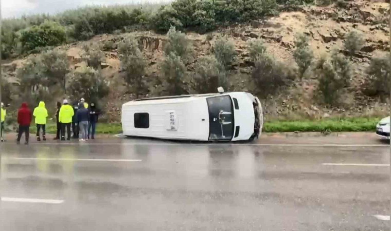 Kocaeli’nin Dilovası ilçesinde yağış sebebiyle kayganlaşan yolda sürücüsünün kontrolünden çıkan işçi servisi devrildi. Kazada 1’i ağır 9 kişi yaralandı.