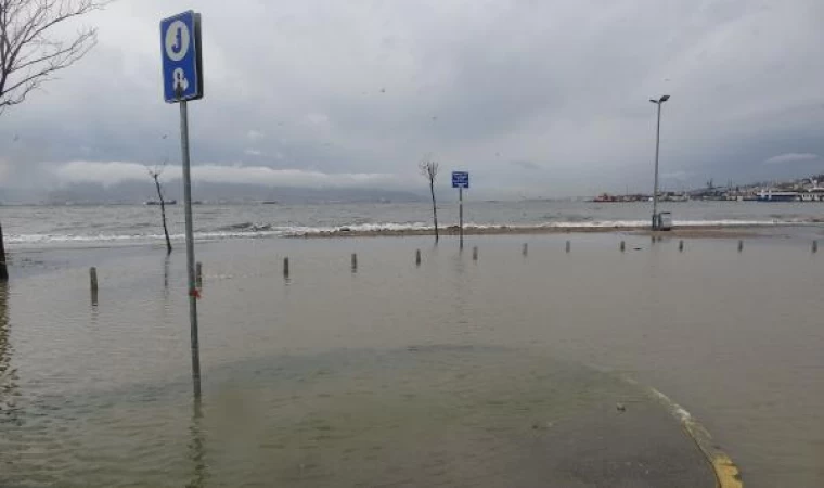 Kentte bu sabah saatlerinde etkili olan sağanak ve fırtınanın ardından deniz taştı. İzmit ilçesi Ömerağa Mahallesi'nde yollar ile sahil bandındaki açık otopark, su altında kaldı. Kocaeli Büyükşehir Belediyesi ekipleri bölgede temizleme çalışması başlatırken, polis sahiplerine ulaşarak otoparktaki araçların kaldırılmasını istedi. (DHA)