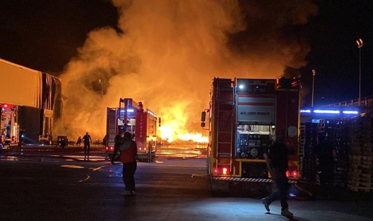 Kartepe ilçesi Aslanbey Organize Sanayi Bölgesi’nde zincir marketin açık alandaki deposunda tahta paletler alev aldı. Henüz bilinmeyen bir nedenle çıkan yangına müdahale etmek için çok sayıda itfaiye ekibi bölgeye sevk edildi. Ekiplerin yangını söndürme çalışmaları devam ediyor.
