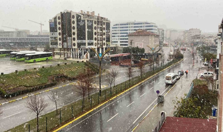 Kocaeli’de etkili olan şiddetli lodos ve yağmur yerini kar yağışına bıraktı. Yüksek kesimler kısa sürede beyaza büründü.