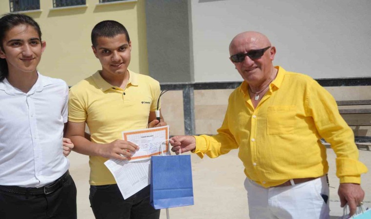 Öğrencilere karnelerini veren okul müdürü Ömer Yılmaz, "Tüm yurtta olduğu gibi okulumuzda karne heyecanı yaşadık. 2023-2024 eğitim öğretim yılının son günü öğrenciler ve öğretmenlerimizle birlikte icra ettik. Karnesini alan öğrencilerin heyecanına ortak olduk" dedi.
