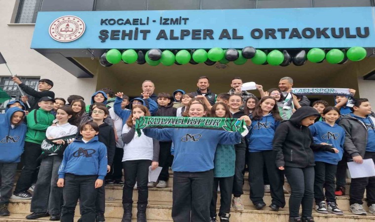 Kocaelispor Kulübü okul buluşmalarına Yuvam İzmit’te Şehit Alper Al Ortaokulu ile devam etti. Futbolculardan Muharrem Cinan ile Mijo Caktas’ın ziyaret ettiği okulda adeta Kocaelispor rüzgarı esti. Tezahüratlar ile okulu inleten çocuklar, unutulmaz bir gün yaşadı. 707 öğrencinin tamamına Kocaelispor bilekliği hediye edilirken, her sınıftan bir öğrenciye çekiliş ile sürpriz hediyeler verildi. Programda hazır bulunan Kocaelispor yönetimin kurulu üyesi Serkan Bulut ve Organizasyon Müdürü Mehmet Açık okuldaki öğrenci, öğretmen ve velileri Kocaelispor maçlarına davet etti.