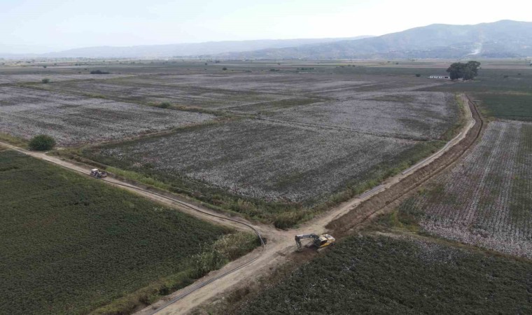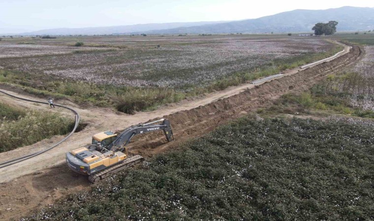Aydın’da 146 bin 40 dekar tarım arazisinin sulamasına hizmet verecek olan Koçarlı Bağarası Sulaması Projesi 2. Kısım çalışmaları çerçevesinde HDPE sulama borularının montaj çalışmaları gerçekleştiriliyor.