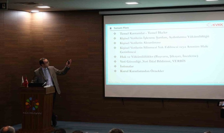 KVKK (6698 Sayılı Kişisel Verilerin Korunması Kanunu) kapsamında Kocasinan Belediyesi’nin personele yönelik düzenlediği hizmet içi eğitim, belediyenin seminer salonunda çalışanların katılımıyla gerçekleştirildi. Kişisel Verileri Koruma Başkanlığı Hukuk Müşavirliği tarafından KVKK (6698 Sayılı Kişisel Verilerin Korunması Kanunu) kapsamında farkındalık eğitimi verildi. Kişisel Verileri Koruma Kurulu Başkanlık Müşaviri Gökhan Civan, slayt sunum eşliğinde KVKK hakkında bilgiler verdi. Ayrıca Kocasinan Belediyesi KVKK Sorumlusu Tuba Karaman ise KVKK hakkında ön bilgilendirme aktardı. KVKK eğitimi esnasında temel kavramlar, kişisel verilerin tanımı, kanunda yer alan aktörler, veri sahibinim hakları, veri işleme şartları, yaptırımlar ve kişinin hakları konularında ayrıntılı bir şekilde anlatıldı. Eğitimde personelin ne tür verilerin kişisel veri olduğu, kişisel verileri nasıl muhafaza edileceği, hangi durumlarda hangi amaçlar doğrultusunda kullanılacağı konularında bilgilendirmeler yapıldı.