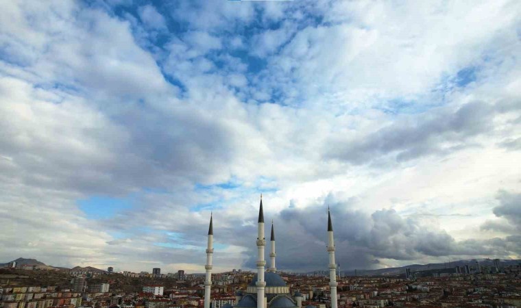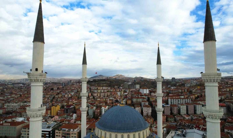 Ankara’nın önemli simgelerinden biri olan Kocatepe Camii’nin yüksek minaresi ve kubbesinin, bulutlarla adeta dans edercesine bir araya gelerek gökyüzü ile uyumu havadan görüntülendi.