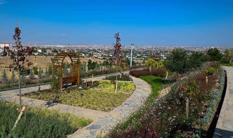 Konya’nın merkez Selçuklu ilçe belediyesinin tema parklarından biri olan Seyir Tepesi’ne kazandırılan Koku Bahçesi 128 tür bitki çeşidi ile ziyaretçilere görsel bir şölen sunuyor.