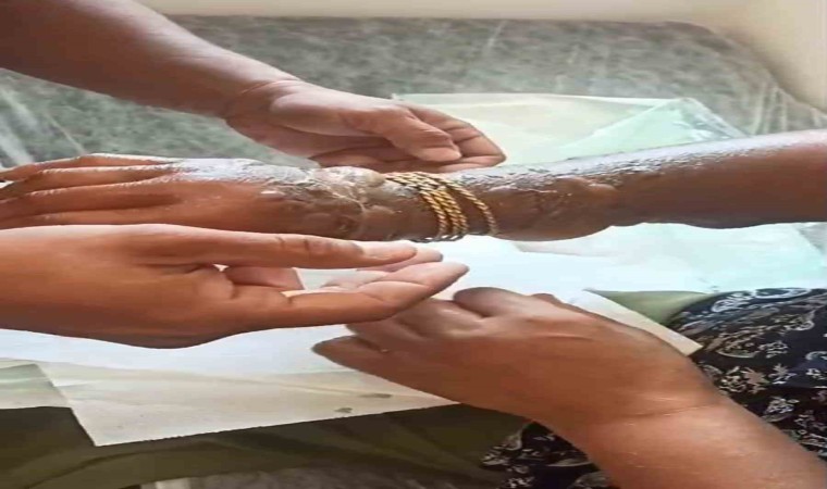 Hatay’da kolu yanan kadının bilezikleri kesilerek çıkarıldı.