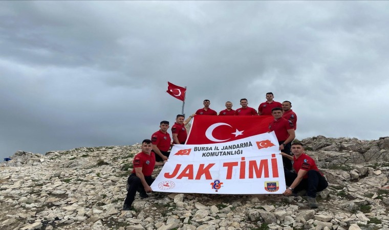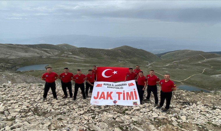 Jandarma Teşkilatı’nın 185. kuruluş yıldönümü nedeniyle, Bursa İl Jandarma Komutanlığına bağlı Jandarma Komando Arama Kurtarma (JAK) ekipleri Uludağ’da zirveye tırmandı. Yaklaşık 2543 metre yüksekliğe tırmanan ekipler, patika yollardan geçip, jip yolu, maden ve kapı mevkileri ile küçük zirve, rasat düzü, Yasemin Geçidi, Baykan sırtları, Karakayalar ve büyük zirve rotası takip edilerek 6 saatlik tırmanış gerçekleştirdi. Bursa’nın zirvesinde Türk bayrağını dalgalandıran ekipler hatıra fotoğrafı çektirirken, vatandaşlar tarafından da büyük övgüler aldı.