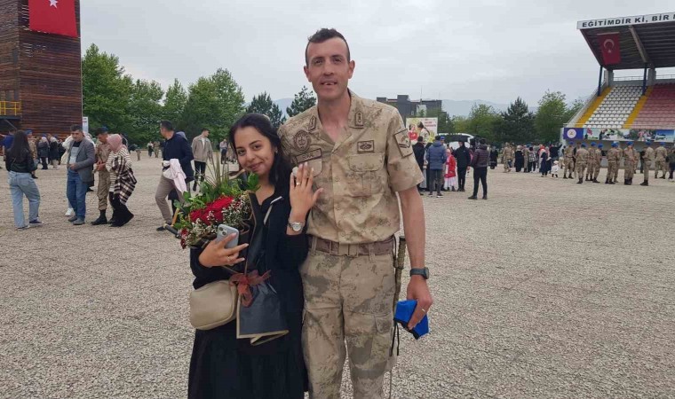 Tören sonunda mezun olan askerler aileleriyle buluşurken bir komando kız arkadaşına sürpriz evlilik teklifi yaptı. O anlar cep telefonu kamerasına yansıdı.