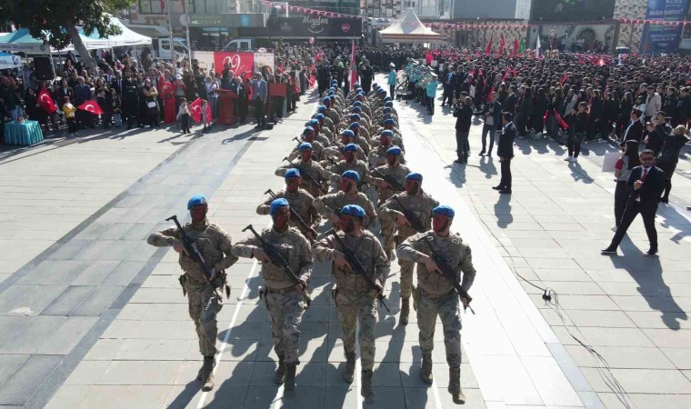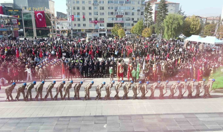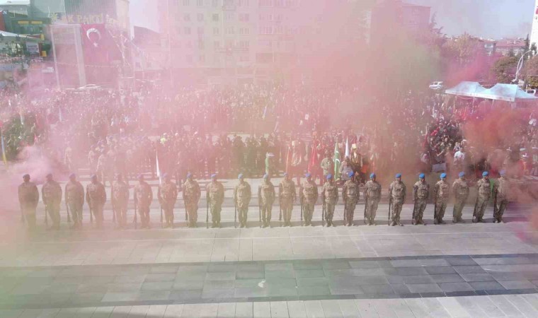 Çorum’da coşku ile kutlanan 29 Ekim Cumhuriyet Bayramı’nda gösteri yapan komandolar nefes kesti.