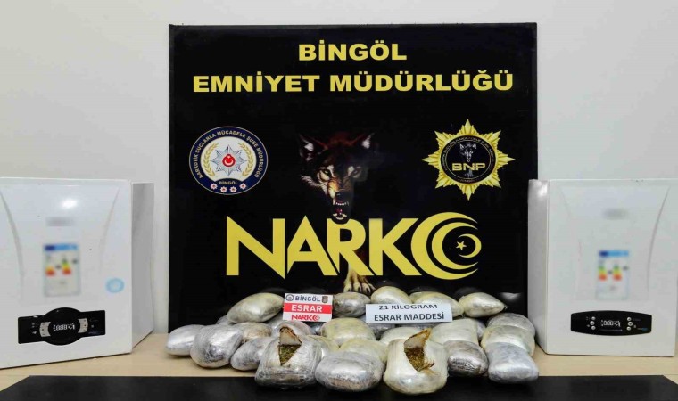 Bingöl İl Emniyet Müdürlüğü’nden yapılan açıklamada, “Yolcu otobüsünün bagaj kısmında kargo gönderisi olarak verilen kombi kasalarına zulalanmış vaziyette 30 paket halinde toplamda 21 kilo esrar maddesi ele geçirilmiştir. Konumda ilgili olarak yakalanan 1 şüpheli şahsa ’Uyuşturucu Madde Ticareti Yapmak’ suçundan işlem yapılmış, firarı olan 1 şahıs ile ilgili yakalama çalışmaları devam etmekte olup, yakalanan 1 şahıs adli makamlara sevk edilmiştir. Bingöl Emniyet Müdürlüğümüz olarak vatandaşlarımızı uyuşturucu madde tacirlerinden uzak tutmak amacıyla gerek önleme çalışmalarımız, gerekse yakalama çalışmalarımız Bingöl balkının da desteği ile artarak ve kararlılıkla devam edecektir” denildi.
