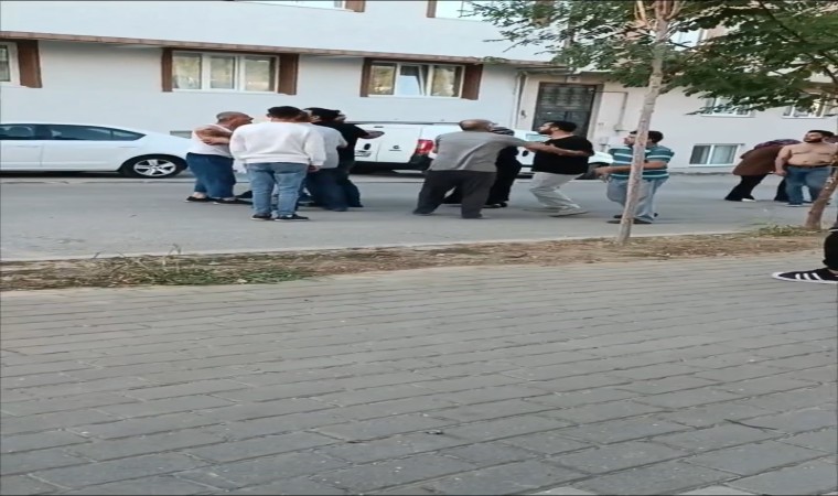 Bursa’da iki komşu arasında sözlü tartışma kavgaya dönüşünce yumruklar hava uçuştu. O anlar kameraya yansıdı.
