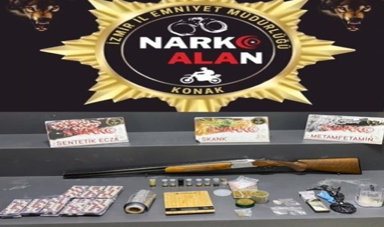 Konak İlçe Emniyet Müdürlüğü ve Narkotik Suçlarla Mücadele Şube Müdürlüğü ekipleri tarafından, Konak ilçesinde 9-19 Ekim tarihleri arasında, uyuşturucu ticaretini önlemeye yönelik çalışmalar gerçekleştirildi. Bu kapsamda, 12 ev ve 3 iş yerine baskınlar gerçekleştirilirken adreslerde yapılan aramalarda, 289 adet ekstazi hap, bin 341 adet uyuşturucu nitelikli yeşil reçeteye tabi sentetik hap, 102 gram kokain, 161 gram esrar, 210 gram metamfetamin ile uyuşturucu ticaretinden elde edilen 47 bin Türk Lirası, 200 ABD Doları, 1 hassas terazi, 2 ruhsatsız tabanca, 2 ruhsatsız pompalı tüfek, 1 av tüfeği, 21 mermi, 9 fişek ve 7 kartuş ele geçirildi.