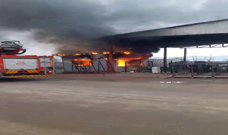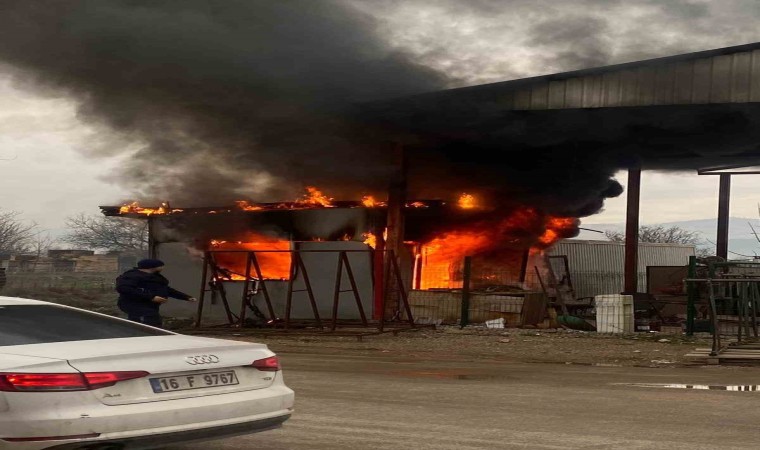Bursa’nın İnegöl ilçesinde hurdacıya ait konteyner büro alev alev yandı.