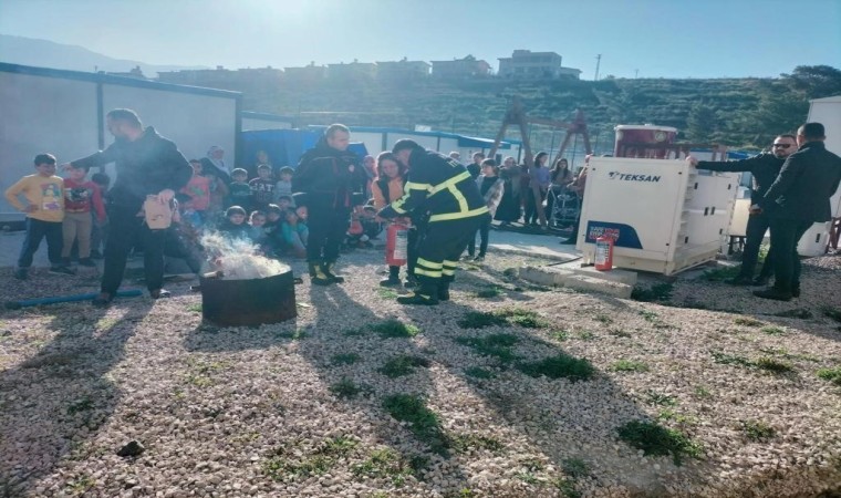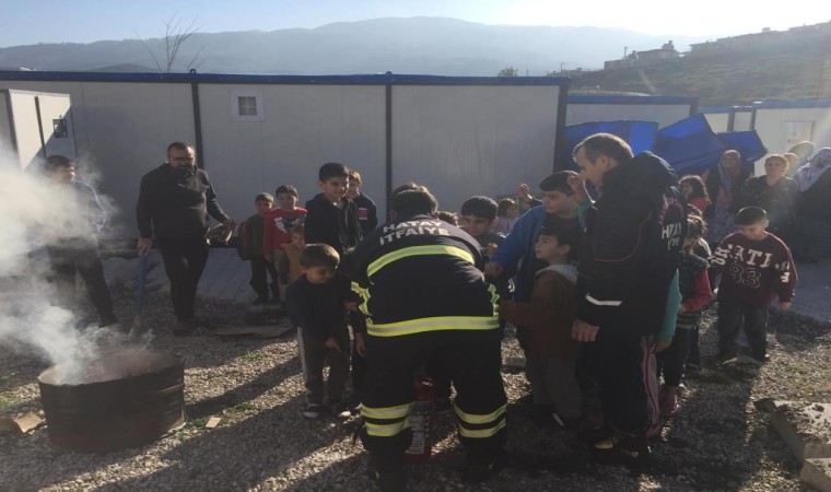Hatay’ın Belen ilçesindeki konteyner kentte yaşayan vatandaşlara yangın eğitimi verildi.