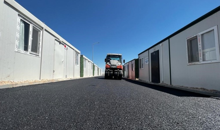 Adıyaman Belediyesi Fen İşleri Müdürlüğü ekipleri tarafından konteyner kent Altınşehir Mahallesi Bağpınar yolu üzerinde yer alan K-26 konteyner kent yaşam alanında asfaltlama çalışmaları devam ediyor.