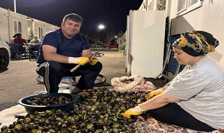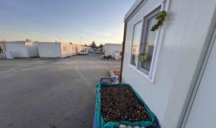 İsmail Kazan isimli depremzede, “Cevizimizi çırptık, kabuğunu soyduk, konteyner çatısında kurutmaya bırakacağız ve kış mevsiminde ise afiyetle yiyeceğiz” dedi.