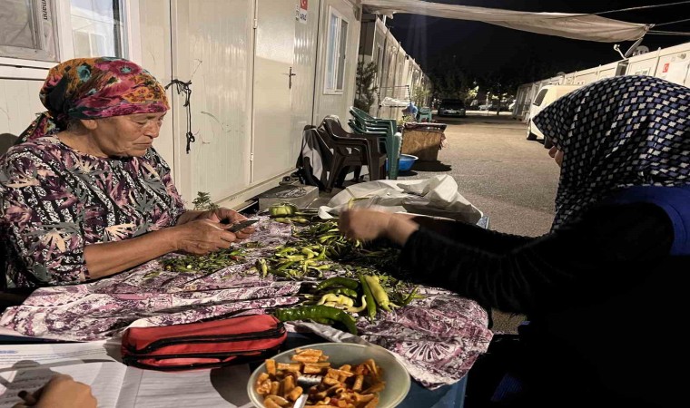 Bir başka depremzede Melek Çayır ise, “Komşumuzun bahçesi vardı, orada biber topladık getirdik ve burada kış için turşu hazırlığı yapıyoruz” diye konuştu.