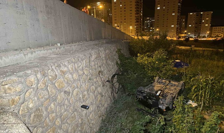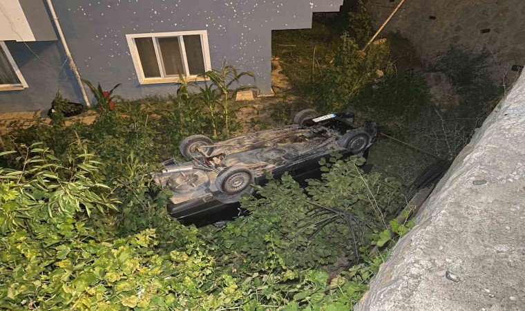 Kastamonu’da sürücüsünün direksiyon hakimiyetini kaybettiği otomobil, 7 metre yükseklikteki istinat duvarından evin bahçesine düştü. Kazada yaralanan sürücü hastaneye kaldırıldı.