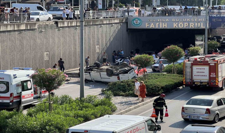 Kontrolden çıkan araç köprülü kavşaktan düştü
