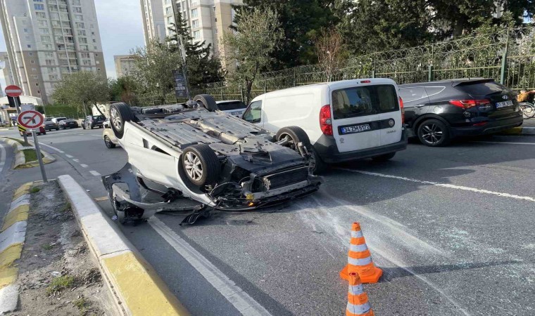 Küçükçekmece’de kontrolden çıkan otomobil hastaneden çıkan araca çarpması sonucu takla atarken, bir kişi hafif yaralandı.