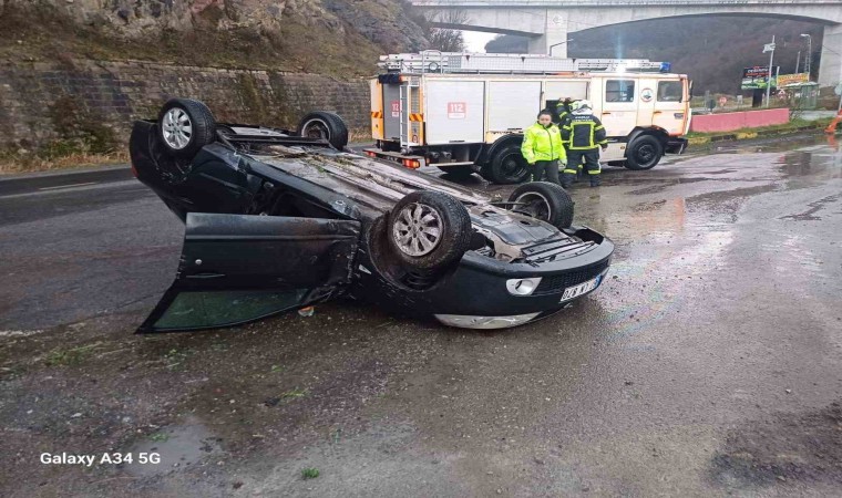 Zonguldak’ın Kozlu ilçesinde meydana gelen kazada araç ters döndü.