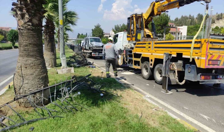 Denizli’de sürücüsünün direksiyon hakimiyetini kaybettiği hafif ticari araç orta refüjdeki bariyerlere çarptı. Araçta büyük hasar meydana gelen kazada 1’i ağır 7 kişi yaralandı.