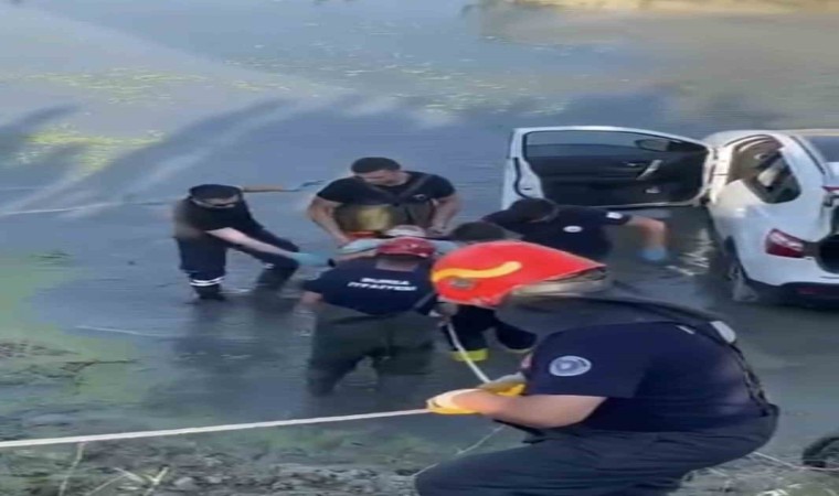 Bursa’da kontrolden çıkan cip, 6 metre yükseklikten dereye uçtu. Kazada araçta sıkışan sürücü itfaiye ekiplerince kurtarıldı.