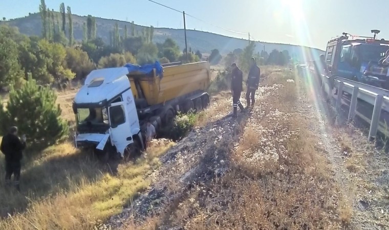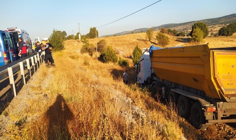 Edinilen bilgilere göre, Kütahya’dan Tavşanlı istikametine gitmekte olan H.K. (33) idaresindeki 60 BZ 001 plakalı hafriyat kamyonu Şahmelek mevkiinde sürücüsünün direksiyon hakimiyetini kaybetmesi sonucu yol kenarındaki bariyerleri kırarak tarlaya uçtu. Kazada, sürücü H.K. yaralandı. Yaralı sürücü 112 acil servis ekiplerinin ilk müdahalesinin ardından Tavşanlı Mustafa Kalemli Devlet Hastanesine kaldırılarak tedavi altına alındı.