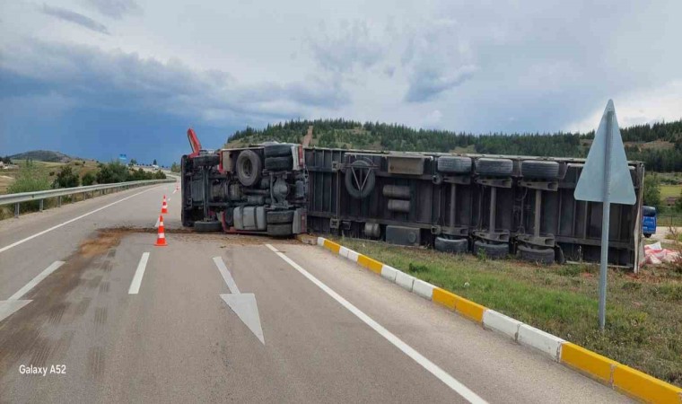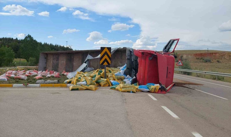 Afyonkarahisar’da kontrolden çıkan hayvan yemi yüklü tır devrilirken, kazada ölen ya da yaralanan olmadı.