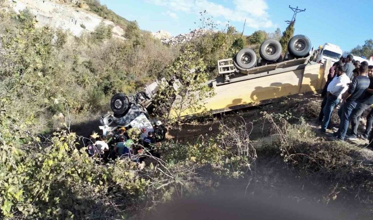 Kaza, merkez Nilüfer ilçesi Maksempınar Mahallesi mevkiinde meydana geldi. Bölgedeki hafriyat döküm sahasına giden bir inşaat firmasına ait hafriyat kamyonu viraja geldiği esnada kontrolden çıktı. Hızla ilerleyen araç kuru dere yatağına devrildi
