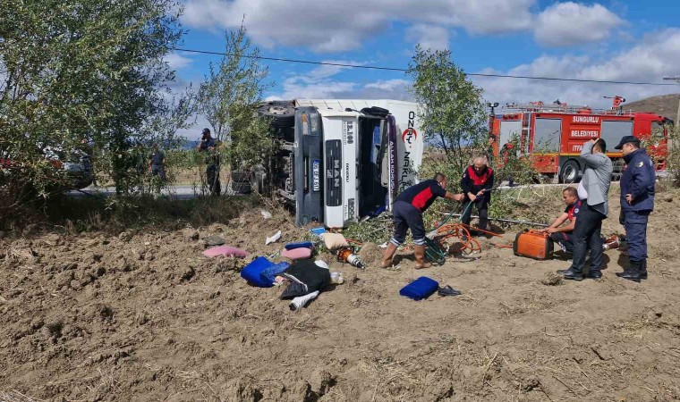 Kaza, Alaca-Sungurlu karayolunda meydana geldi. Edinilen bilgilere göre, İhsan Karandı idaresindeki 06 DFJ 617 plakalı kamyon ile Alaca ilçesi istikametinden Sungurlu ilçesi istikametine seyir halindeyken sürücünün direksiyon hakimiyetini kaybetmesi sonucu yol üzerine devrildi. Kazada sürücü ve yanında bulunan Ömer Karaca ve Sezai Aydın yaralandı. Araç içerisinde sıkışan yaralılar Alaca ve Sungurlu itfaiye ekipleri ile sağlık görevlileri tarafından bulundukları yerden çıkarıldı. Olay yerinde ilk müdahalesi yapılan yaralılar ambulanslarla Erol Elçok Eğitim ve Araştırma Hastanesi’ne kaldırılarak tedavi altına alındı.