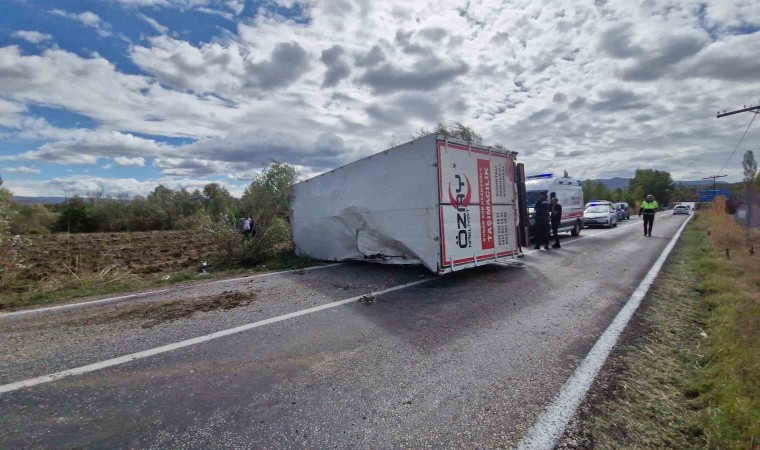 Çorum’un Alaca ilçesinde kontrolden çıkan kamyonun devrilmesi sonucu meydana gelen trafik kazasında 3 kişi yaralandı.