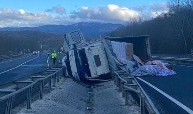 Kaza, Bursa-Ankara karayolu İnegöl Yeniköy Mahallesi mevkiinde meydana geldi. Ankara istikametinden Bursa’ya seyir halinde olan Sıddık Y. (47) idaresindeki 27 AFM 403 plakalı temizlik malzemesi yüklü kamyon, Yeniköy Mahallesi mevkiinde sürücünün kontrolünden çıktı. Savrulan kamyon bariyerlere çarpıp orta refüje devrildi. Kaza sonucu sürücü yaralanırken, kamyon kasasındaki malzemeler yola saçıldı. Yaralı olay yerine sevk edilen ambulansla İnegöl Devlet Hastanesine kaldırıldı. Jandarma komutanlığı ekipleri kazayla ilgili soruşturma başlattı.
