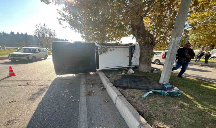Kahramanmaraş’ta sürücüsünün direksiyon hakimiyetini kaybettiği kamyonet, refüje çıkıp ağaca çarparak yan yattı. Kazada 2’si ağır 5 kişi yaralandı.