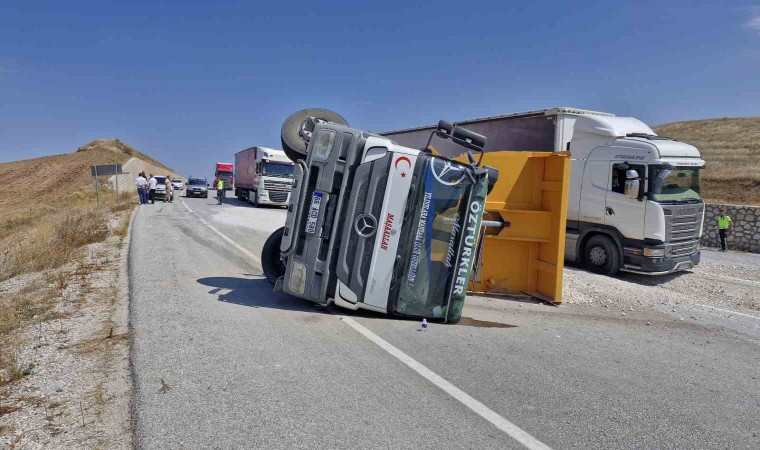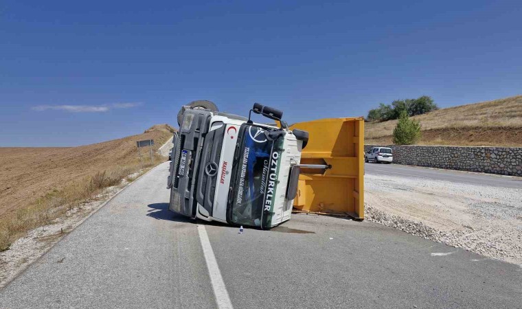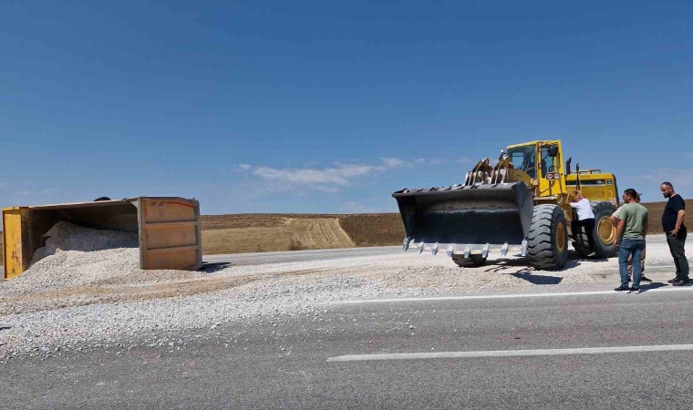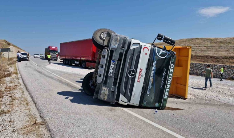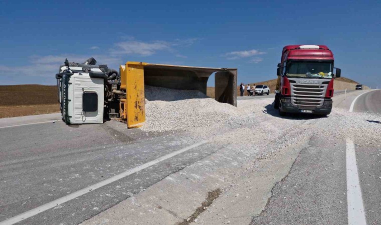 Çorum’un Alaca ilçesinde, kontrolden çıkan mıcır yüklü kamyonun devrildiği kazada sürücü yaralandı.
