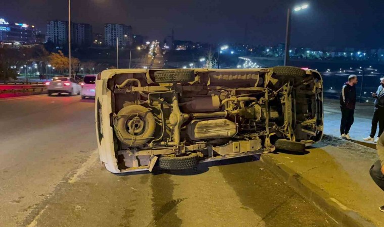 Adıyaman’da, sürücüsünün direksiyon hakimiyetini kaybettiği midibüs kontrolden çıkarak takla attı.