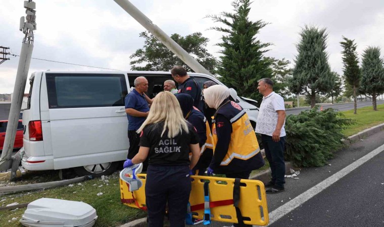 Nevşehir’de kontrolden çıkan minibüsün aydınlatma direğine çarpması sonucu 2 kişi yaralandı.