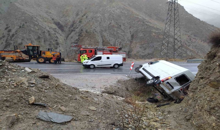 HAKKARİ (İHA) – Hakkari’de yağışlı havadan dolayı kontrolden çıkarak devrilen minibüsteki 3 kişi hafif yaralandı.