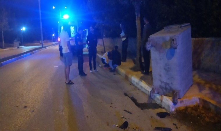 Çorum’un Osmancık ilçesinde kontrolden çıkan motosiklet çöp konteynerine çarptı. Sürücü kazayı küçük sıyrıklarla atlattı.